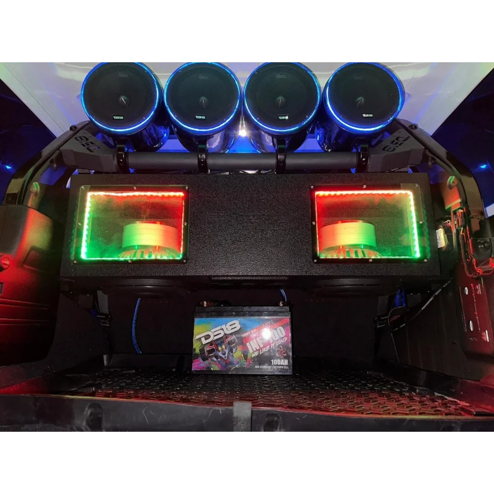 DS18’s JL-TUBEUP/BK is the perfect solution for mounting DS18 towers on your Jeep Wrangler JLU – using factory mounting points, anchor a super strong mounting tube that allows for seamless installation of DS18’s HYDRO Tower Speakers.